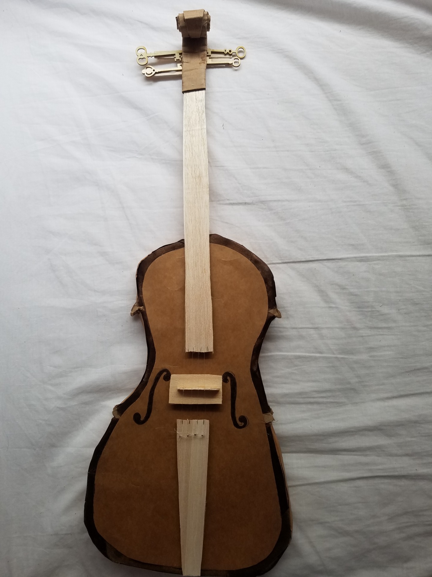 Aquí hay una foto sobre el violín casero, hecho con cartón